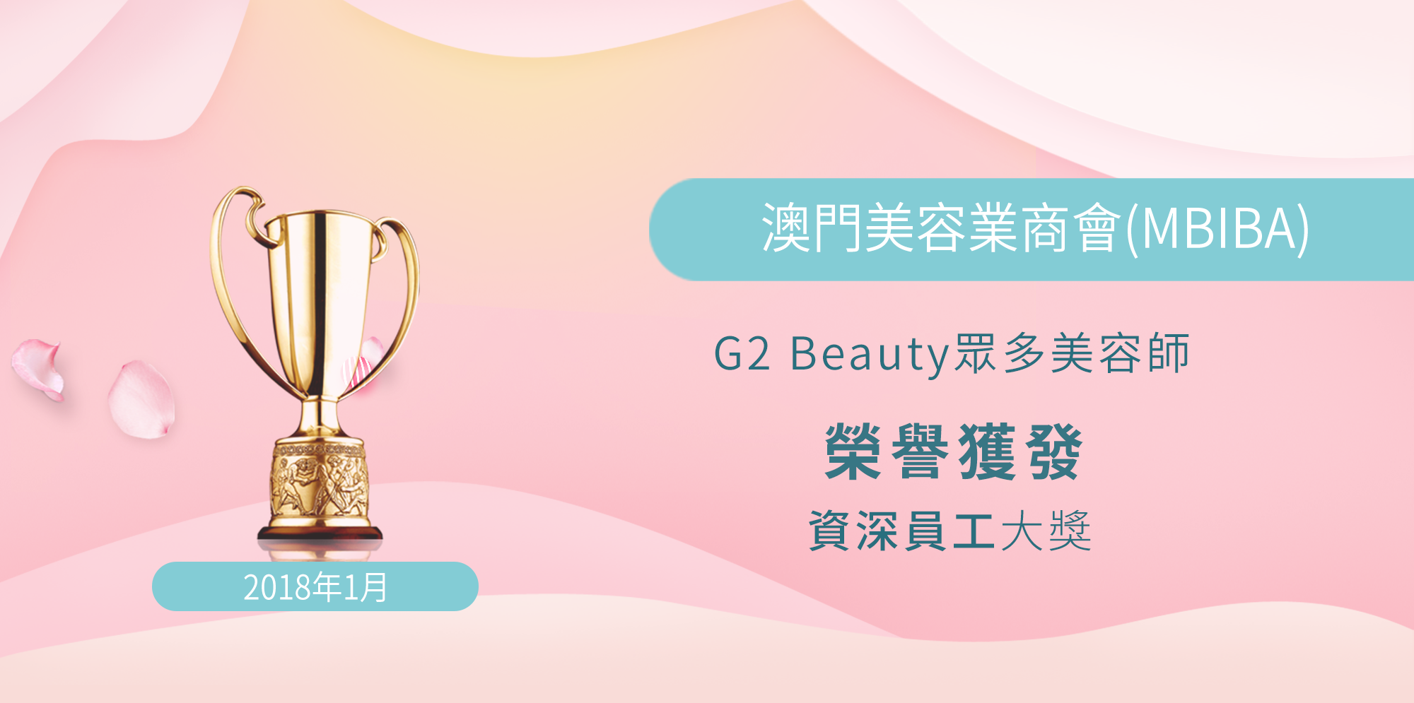 澳門美容業商會於2018年1月19日舉行首屆美容業頒獎典禮,嘉獎從業人員,促進行業發展。 G2 Beauty Group時尚美容集團眾多員工獲得由澳門美容業商會(MBIBA)頒發第一屆澳門美容業獎項 – 《資深員工大獎》,是對G2 Beauty旗下員工美容及經驗水平的一個肯定。