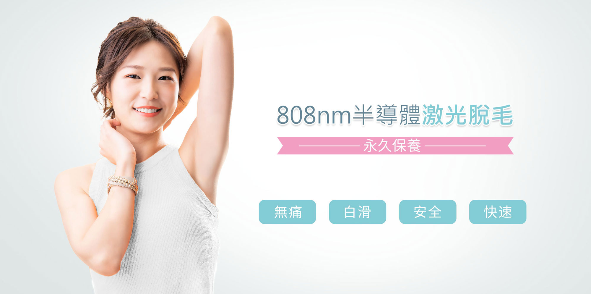 相較其他一般鐳射脫毛儀器的鐳射治療面積大,覆蓋範圍高達12x12mm,因此治療過程特別快,一般情況下,小部位脫毛(如腋下、上唇)只需時5分鐘,而大部位脫毛(如前小腿、大腿)亦只需20分鐘。而且更快速見效,治療期較一般彩光/鐳射脫毛短,如相較1064鐳射脫毛可快2至3倍見效;比傳統彩光脫毛更可快3至5倍見效。 808nm半導體鐳射是先進的永久性脫毛方法之一,全程無痛永久脫毛,無副作用,脫毛同時更能達至嫩膚,令促進肌膚新陳代謝,並收緊毛孔,細膩、緊實。
