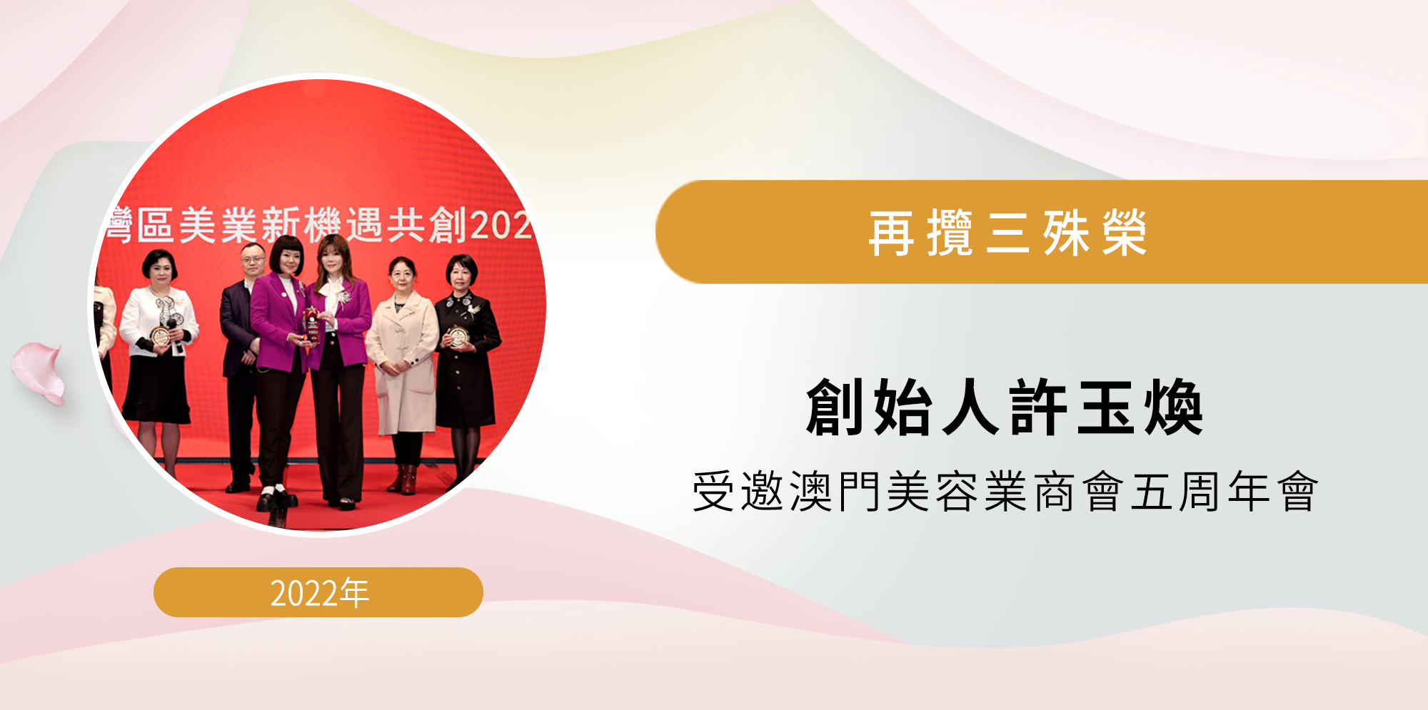 2021年12月30日,澳門美容業商會五周年會慶暨粵港澳大灣區美業新機遇共創2022峰會在澳門隆重舉行。G2 Beauty創始人許玉煥博士一舉榮獲粵港澳大灣區《美業發展傑出推動獎》。