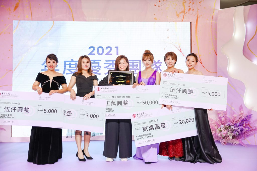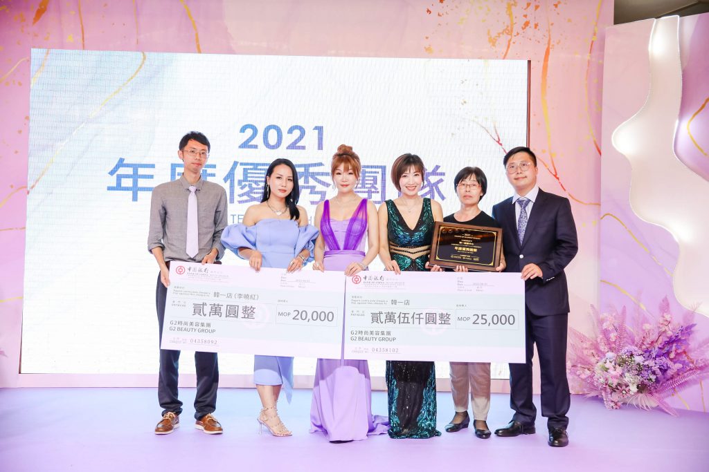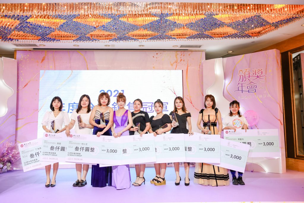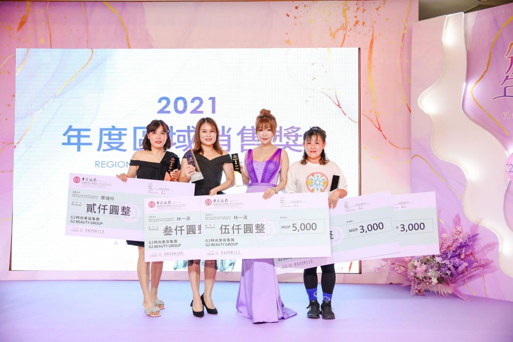 許玉煥博士上臺為澳門夥伴們,頒發《2021年度傑出顧問》《2021年度傑出顧問》《2021年度分店銷售冠軍》《2021年度區域銷售冠亞季軍》《2021年度特別貢獻獎》《2021年度進步獎》獎項。