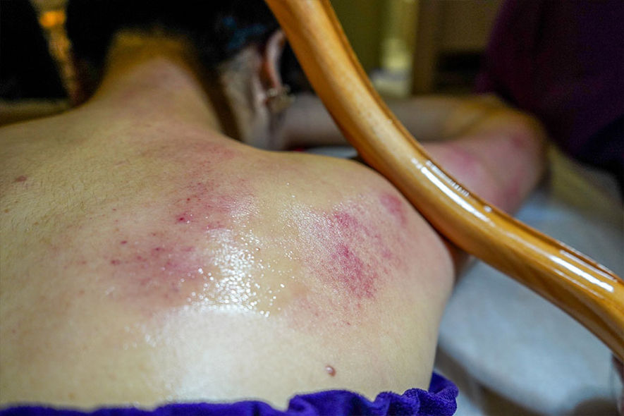 这种spa有点像一般所知的「刮砂」,因应个人情况治疗完身体会出现不同深浅的红印,大 约维持两至三日左右便会自然褪去。治疗师按摩时亦会讲解身体的状况,同时亦会因应需要而调整力度。