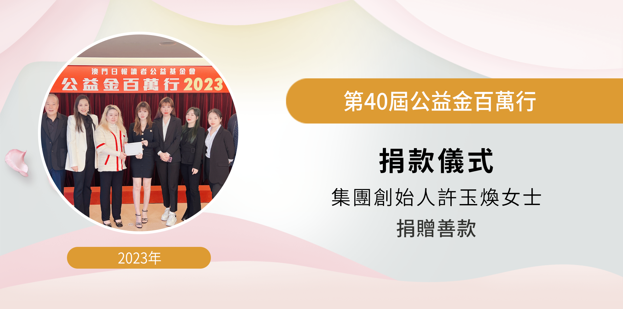 G2 BEAUTY时尚美容集团创始人许玉焕博士,一直秉持回馈社会,热心做公益。2023年12月4日,创始人许玉焕博士协同G2集团代表,向澳门日报读者公益金会「第40届公益金百万行2023」捐赠善款。